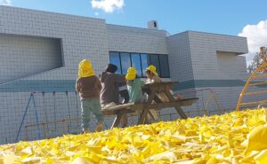 年長さんは木工遊びを中心に、素材の色合い、手触りを活かした展示。